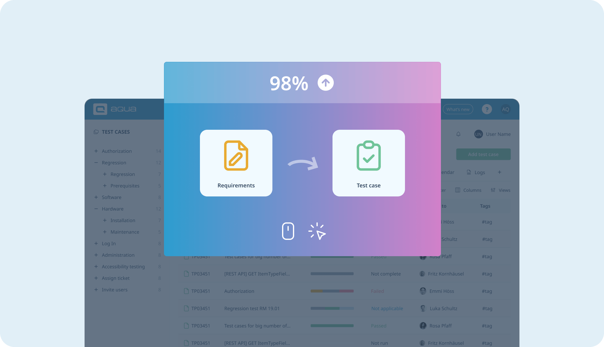 Push your test coverage to 98+% with aqua test management solution